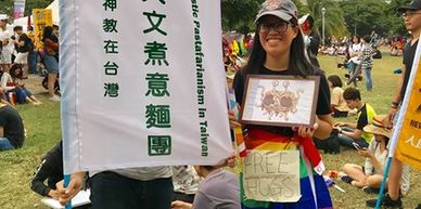 同志愛吃麵,麵神也愛同志,麵神金身曾多次出沒在同志大遊行的場合,表達對LGBTQ族群權利的支持,許多善信大德也很熱情的與煮合照。未來將規劃在遊行中提供麵食,讓遊行的朋友們能來享用。